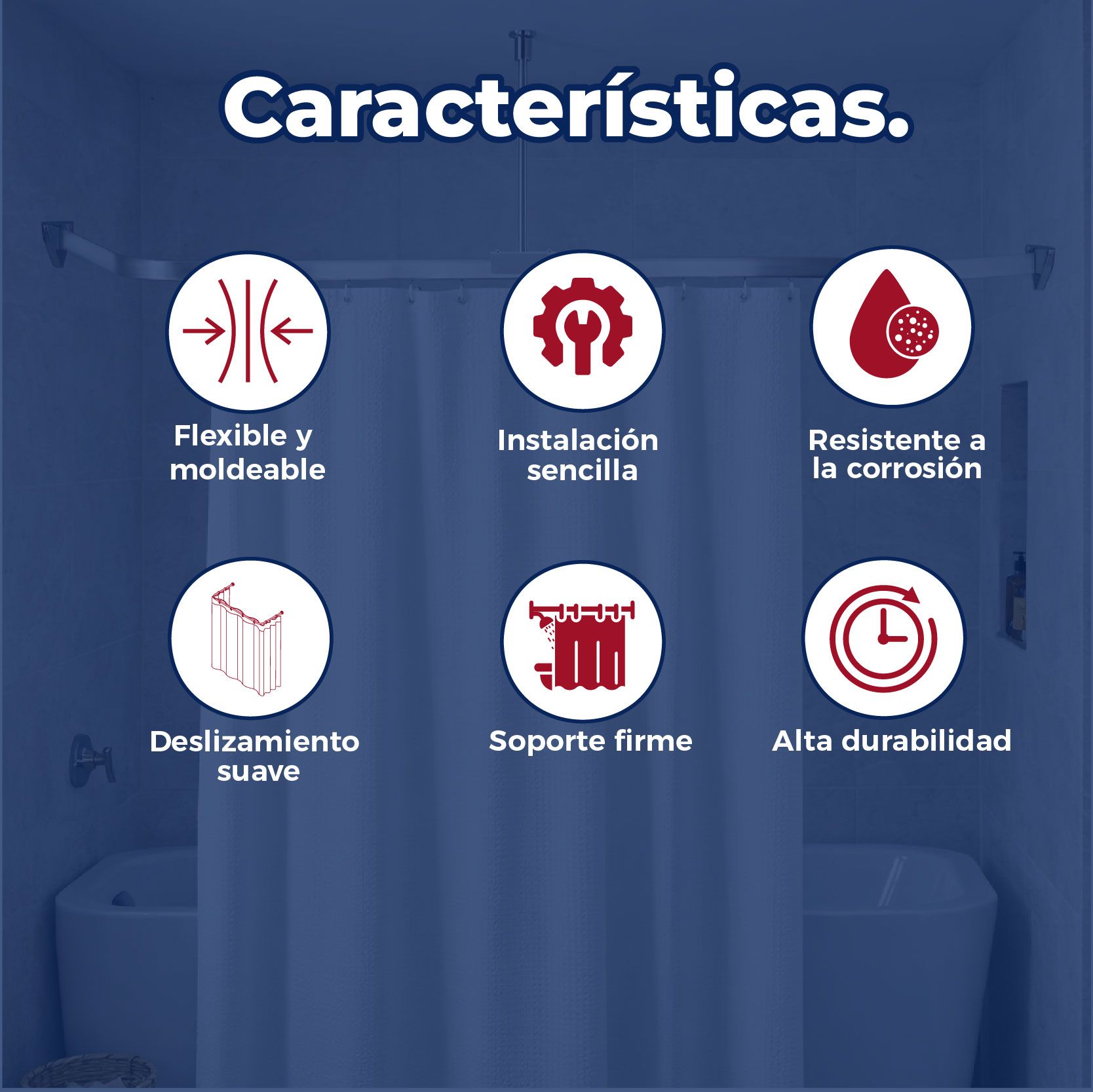 Su principal beneficio es la excepcional versatilidad de su estructura moldeable, la cual permite adaptar el riel de forma manual a cualquier configuración de ducha o bañera, ya sea en ángulo, en curvas asimétricas, eliminando la necesidad de buscar soportes con medidas especiales.
