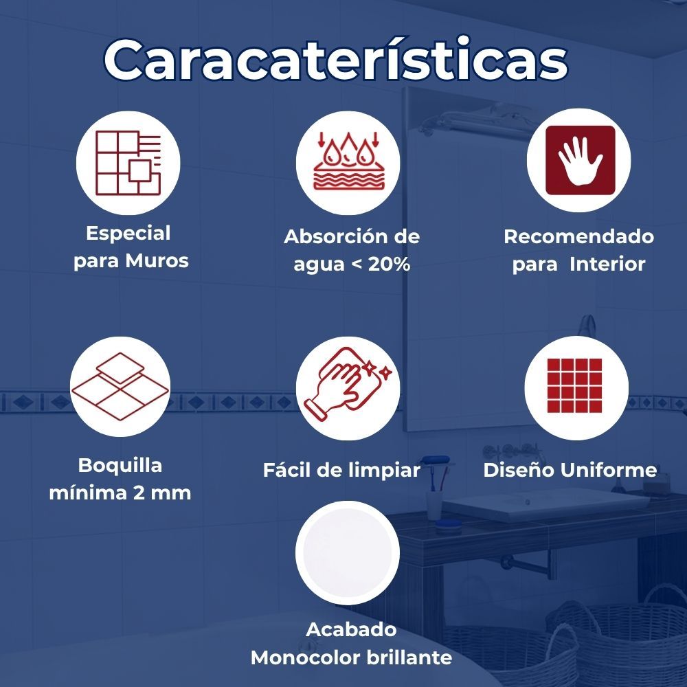 Su formato de 20x30 cm facilita una instalación ágil en muros, mientras que su superficie cerámica de alta calidad garantiza una limpieza sencilla y una resistencia duradera frente a la humedad