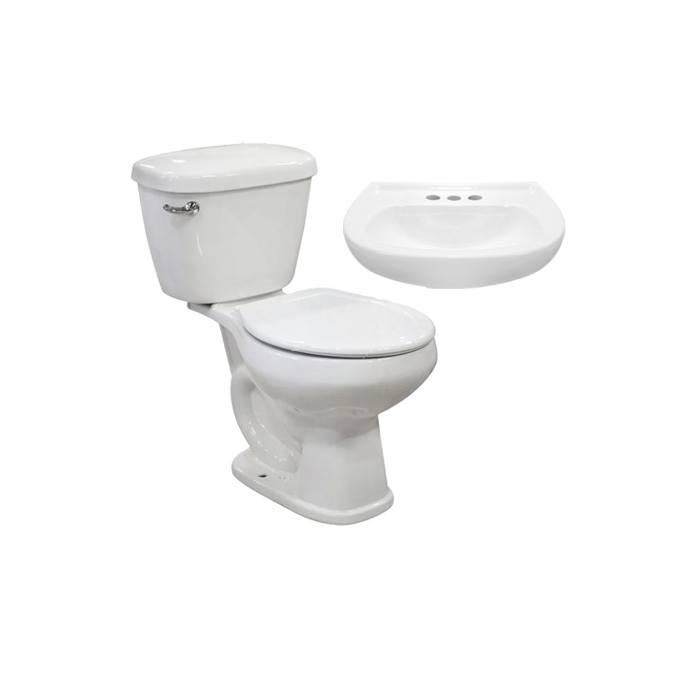 Paquete sanitario Agua Azul de la marca Cato en color blanco es una solución integral y eficiente para el cuarto de baño, destacando por su diseño redondo de dos piezas que optimiza el espacio sin sacrificar la funcionalidad. Fabricado en cerámica vitrificada de alta resistencia, este combo suele incluir un sanitario de grado ecológico con un sistema de descarga de 4.8 litros, lo que garantiza un ahorro significativo de agua, además de complementar el conjunto con un lavabo de pedestal a juego y herrajes resistentes.