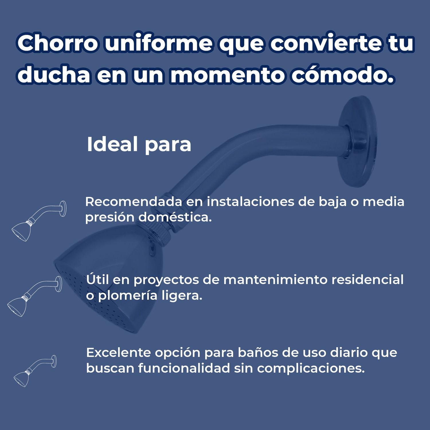 Al incluir el brazo y el chapetón coordinados, la Regadera Genova Rugo 44G garantiza una instalación sencilla y armónica, eliminando la necesidad de buscar piezas por separado y asegurando un sellado preciso que evita fugas. Además, su construcción está orientada a la durabilidad y resistencia al sarro, lo que la convierte en una opción confiable y de bajo mantenimiento para quienes buscan renovar su espacio con un toque de elegancia clásica y eficiencia.